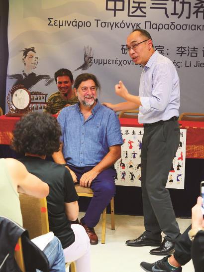 身为希腊武术功夫协会秘书长,62岁的亚尼斯身形魁梧、扎着小辫。他先从医、后习武,早前来华实习针灸技法,如今又迎来中医专家教功法。