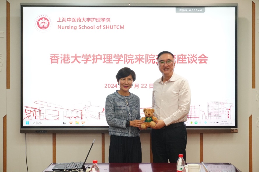 护理学院周院长从发展历程、教学学科、师生规模及附属医院等方面对天游ty8线路检测中心登录作了简要介绍,重点介绍学院最新发展与成就,包括办学层次、教学工作与成果、科研工作与成果、基地平台建设、人才培养、合作交流等内容。林佳静也详细介绍了香港大学护理学院的基本情况,包括在学术创新、科研成就、教学创新及与全球联系等方面的表现,同时强调了香港大学护理学专业的优势,并表达了希望双方在多领域深化合作的愿望。