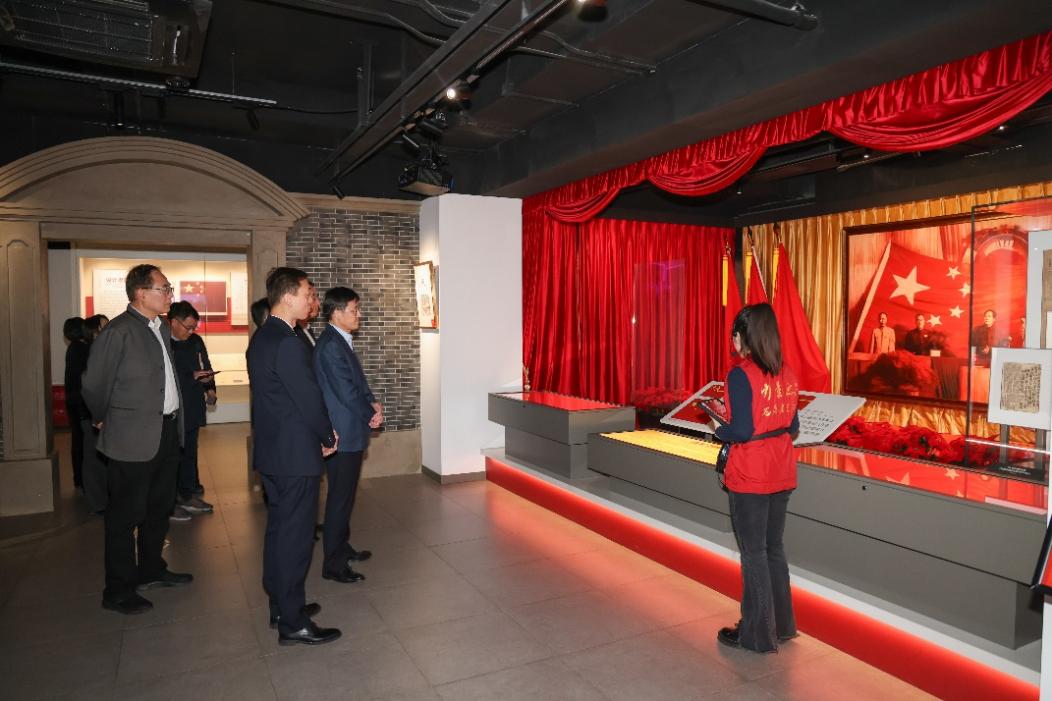 来自东华大学、上海海关学院的4名大学生讲解员,引领嘉宾和师生们步入国旗教育展示厅进行参观,并以其扎实的专业素养和热忱饱满的精神风貌接力讲述国旗背后的感人故事。他们富有感染力的讲解使在场参观人员深切体悟到国旗所承载的爱国主义精神和传递的中华民族共同体理念。国旗教育展示厅参访结束后,在场人员集中观看影片《中共四大百年》节选片段,共同回顾中共四大百年征程,从伟大建党精神中汲取源源不绝的力量。