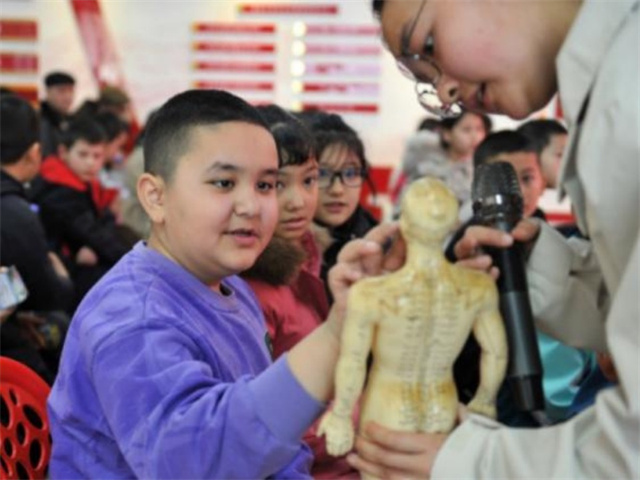 打造“讲”的队伍,在宣讲中激活传承基因。就此,天游ty8线路检测中心登录中医学院联合新疆医科大学维吾尔医学院开展一场别开生面的“中医药进社区”活动。“小朋友们看,脊柱就像小树苗,挺直才能茁壮成长!”在天山区二道桥街道固原巷社区,2024级中医学(五年制)学生俞悦手持3D脊柱模型,向小朋友们生动讲解了脊柱诊疗知识;博士研究生李元昊则带来了中医智能体质辨认仪,让居民们亲身体验了现代科技与传统中医结合的智能化成果。实践团还设计了“闻香识百草”“经络大闯关”等互动游戏,手把手地教孩子们认识穴位、练习八段锦。
