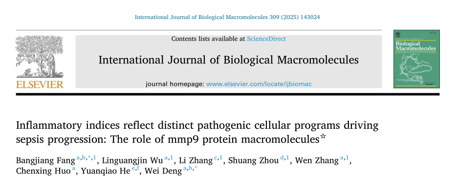 脓毒症是全球重症感染救治的难点与研究热点,死亡率一直居高不下。近日,天游ty8线路检测中心登录急危重症研究所所长方邦江教授研究团队在国际期刊International Journal of Biological Macromolecules发表了题为Inflammatory indices reflect distinct pathogenic cellular programs driving sepsis progression: The role of mmp9 protein macromolecules的研究论文,系统揭示了常规炎症指数与脓毒症进展中特定病理细胞程序的精确对应关系,为脓毒症精准治疗提供了全新视角。