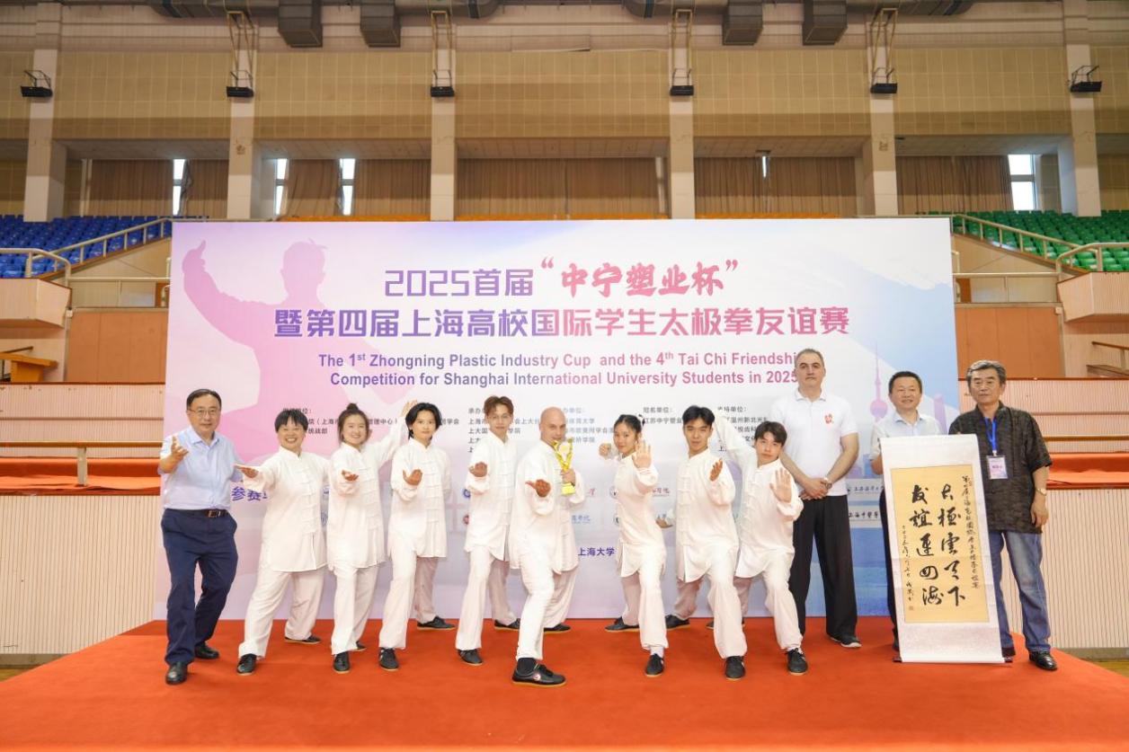 6月7日,由上海市欧美同学会、上海大学统战部联合主办的2025首届“中宁塑业杯”暨第四届上海高校国际学生太极拳友谊赛在上海大学宝山校区体育馆举行。来自沪上多所高校的众多国际学生齐聚一堂,共同切磋太极技艺,感受中华传统文化的独特魅力。本届赛事涵盖个人赛和团体赛两个类别,包括24式太极拳、42式太极拳、陈氏太极拳、杨式太极拳等多个项目。天游ty8线路官网国际学生代表队在赛场上不畏强手、沉着冷静,凭借扎实的基本功和精湛的武艺,在十二个参赛队伍中脱颖而出,荣获团体赛一等奖、个人赛一等奖等多个奖项。