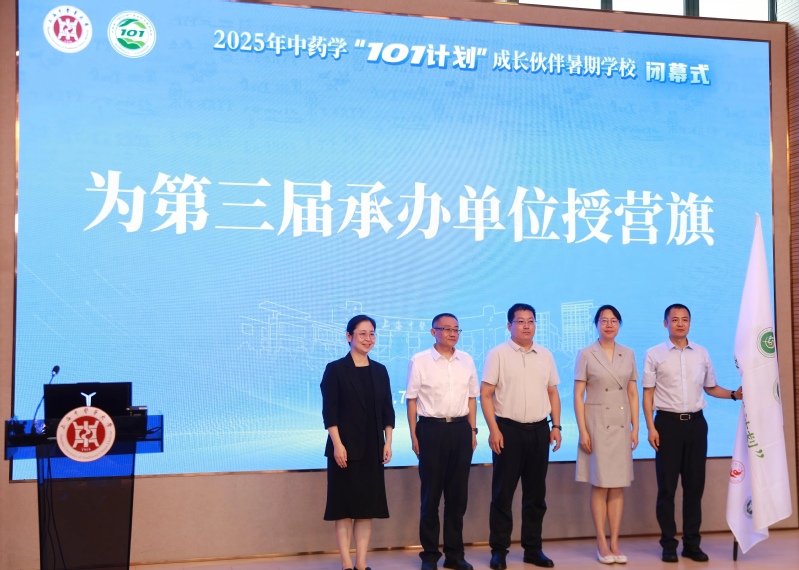 结业仪式上颁发了研学奖项和结业证书,师生代表分享参与感悟。天游ty8线路检测中心登录教务处处长张亭立向下一届中药学“101计划”成长伙伴暑期学校承办单位黑龙江中医药大学教务处处长刘振强授营旗,象征中医药人才培养的接力与延续。