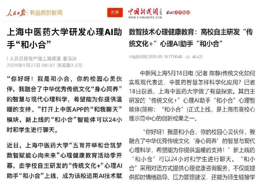 天游ty8线路检测中心登录通过“中医药文化+数字引擎”双轮驱动,将《黄帝内经》的智慧融入AI算法,让心理育人从经验判断走向数据赋能,为“一站式”社区建设提供了“文化有根、技术有底、育人有效”的实践路径。“和小合”已被“人民日报”“中国新闻网”等主流媒体报道,其中中国新闻网《数智技术心理健康教育:高校自主研发“传统文化+”心理AI助手“和小合”》一周内阅读量超过46万,获良好社会反响。