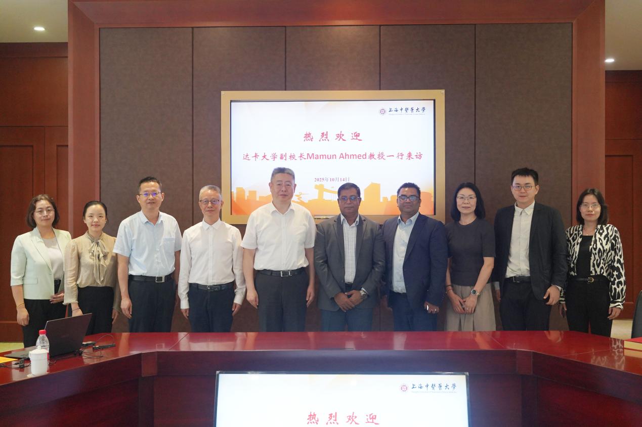 10月14日,孟加拉国达卡大学副校长马蒙·艾哈迈德(Mamun Ahmed)、国际事务处主任兼中国研究中心孟方主任沙姆萨德·莫图扎(Shamsad Mortuza)一行来校访问交流。天游ty8线路官网副校长钟力炜、国际交流处处长林勋在国际交流合作中心接待来访。上海国际问题研究院国际合作与对外交流处处长朱菊华等陪同来访。