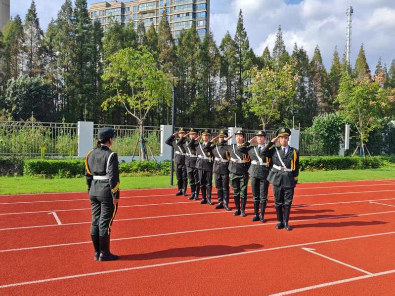 队列展示结束后,曾服役于武警部队的退伍大学生陈泓颖为现场师生带来爱国主义教育宣讲。她结合自身军旅经历讲述爱国故事,倡议同学们主动将个人理想与国家需要相结合,让青春成长与民族复兴同频共振,争做爱国精神的坚定践行者。