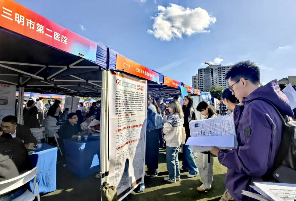 三明市中西医结合医院、三明市皮肤病医院、三明医学科技职业学院……福建省三明市首次来上中医揽才,5家医疗机构和1所学校组团带来医疗高层次人才岗位近60个,优厚的引才政策和发展前景,吸引不少上中医的应届毕业生排队投递简历。他们中既有福建籍毕业生,也有来自临近省份如江西等地的学生。