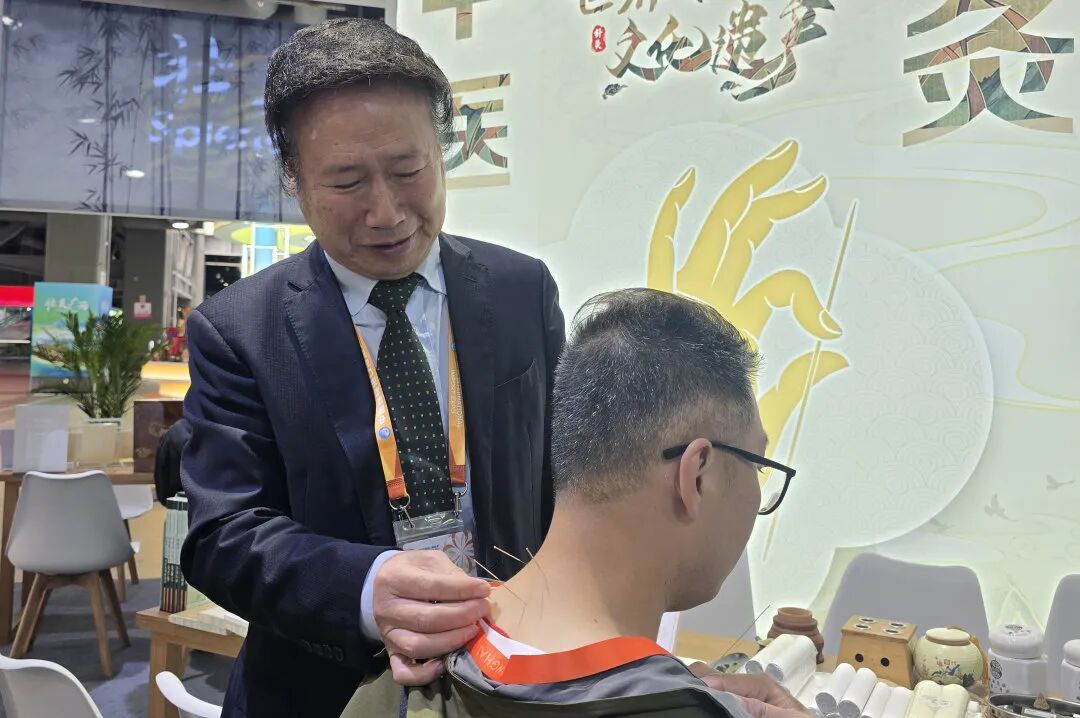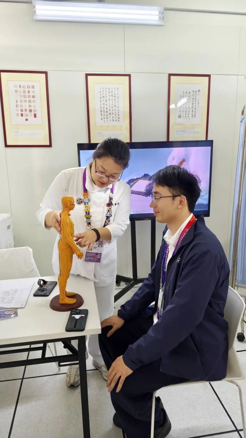 在新闻中心餐厅对面,是天游ty8线路官网附属曙光医院运营的“健康充电站”——中医服务点。今年是该院第二年运营中医服务点,医院以国家级非遗项目“丁氏推拿疗法”为代表的传统推拿技艺与现代康复技术深度融合,形成了一套系统立体的健康服务方案。自11月1日正式投入运行以来,服务点每天从早到晚人流不断,每天为约50名中外记者和工作人员提供中医调理服务,“圈粉”中外媒体。