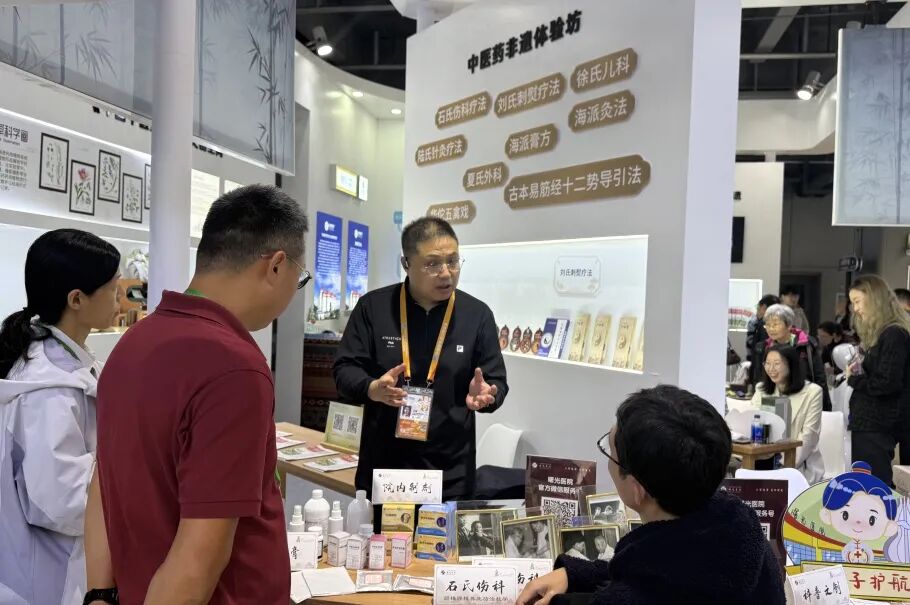 会展期间,由《中国中医药报》社主办的“中医药非遗会客厅”在非物质文化遗产展示专区亮相。这是中医药首次以独立主题展台形式亮相进博会。展台通过实物展示、互动体验、多媒体呈现等形式展现中医药非遗在健康服务、文化传承与国际传播中的独特价值,让观众直观感受中医药非遗的魅力。