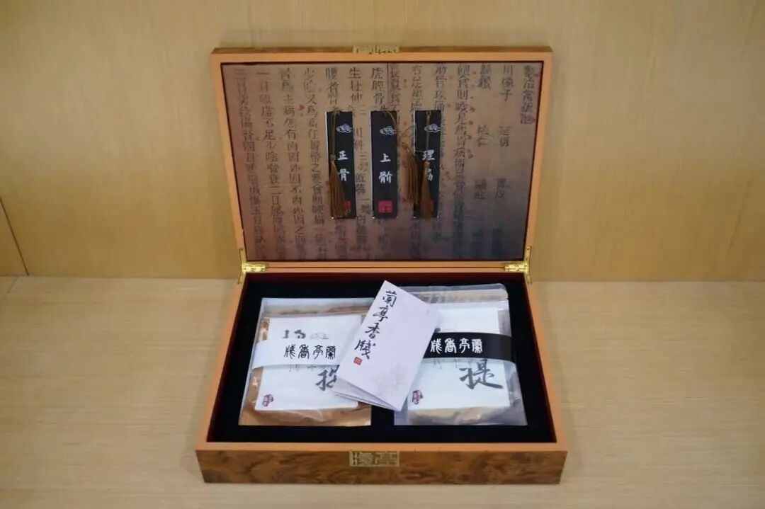 展台内,不仅有医务人员现场演示“颈椎导引功”养生功法、疏肝散结穴位保健手法及各类非遗特色疗法,还展示了各非遗项目优势病种特色疗法相关的院内制剂、外用制剂以及特色文创产品。其中,石氏伤科带来了首届国潮文创设计大赛“最佳作品奖”获奖作品“兰亭香笺”引来不少观众。