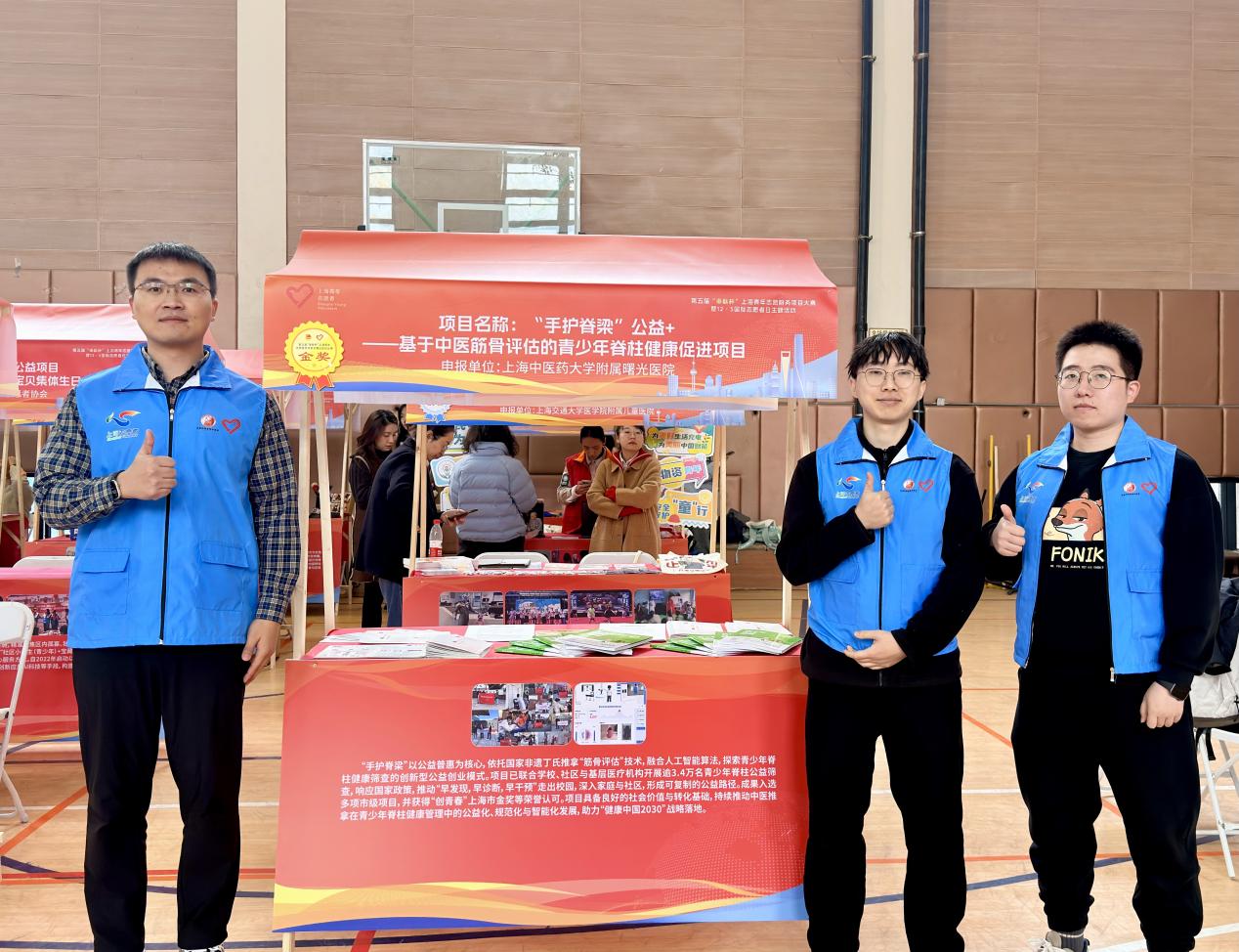项目简介:“手护脊梁”以公益普惠为核心,依托天游ty8线路检测中心登录附属曙光医院推拿科“筋骨评估”技术,融合人工智能算法,探索青少年脊柱健康筛查的创新型公益创业模式。项目已联合学校、社区与基层医疗机构开展逾3.4万名青少年脊柱公益筛查,响应国家政策,推动“早发现,早诊断,早干预”走出校园,深入家庭与社区,形成可复制的公益路径。成果入选多项市级项目,并获得“创青春”上海市金奖等荣誉认可。项目具备良好的社会价值与转化基础,持续推动中医推拿在青少年脊柱健康管理中的公益化、规范化与智能化发展,助力“健康中国2030”建设。