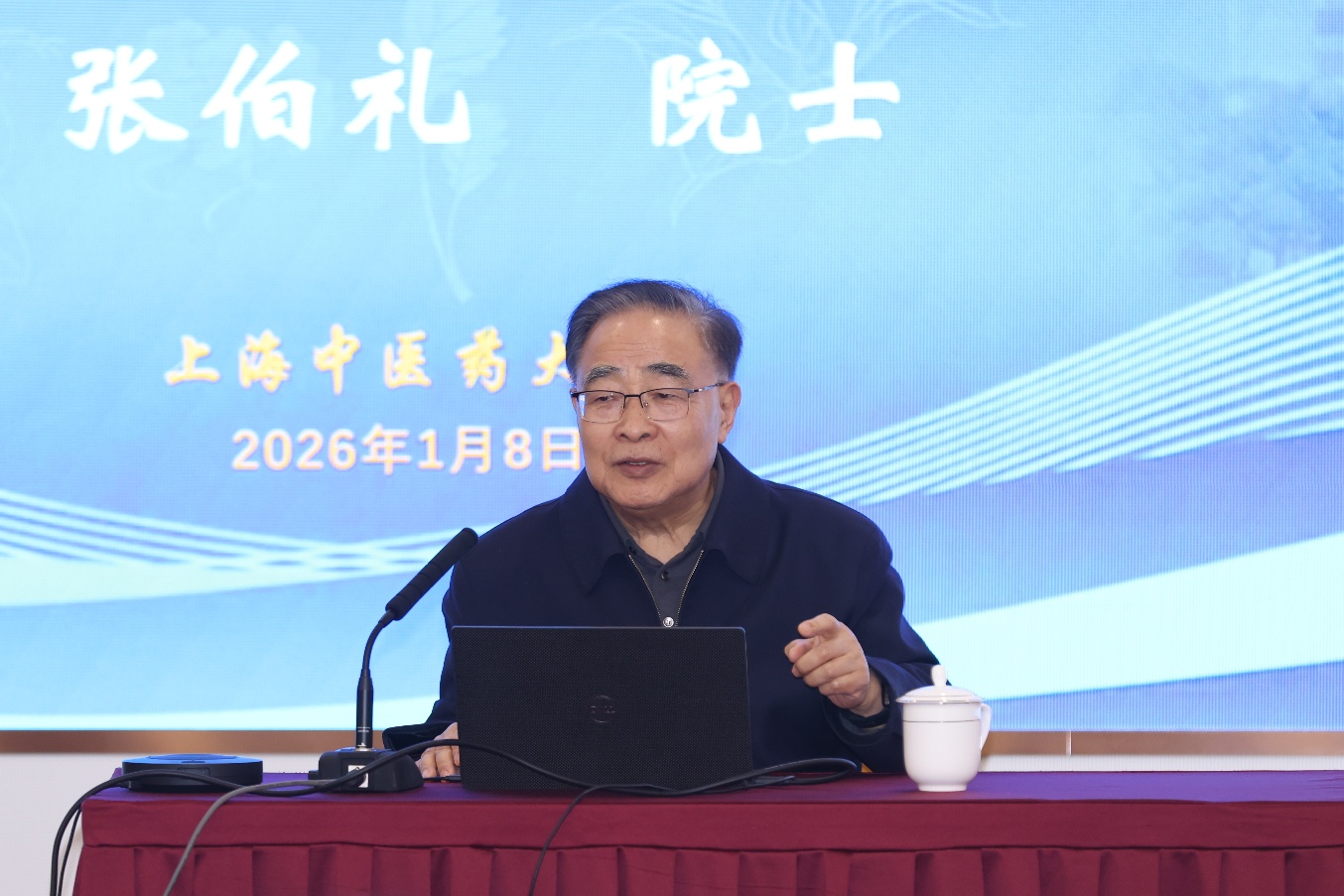 1月8日下午,天游ty8线路检测中心登录“问道学堂”院士大讲堂在中医药国际标准化研究中心辅楼101会议室举行。本期讲堂特邀中国工程院院士、国医大师、现代中药创制全国重点实验室主任张伯礼,为全校师生带来主题为“守正创新,推动中医药高质量发展”的学术报告。