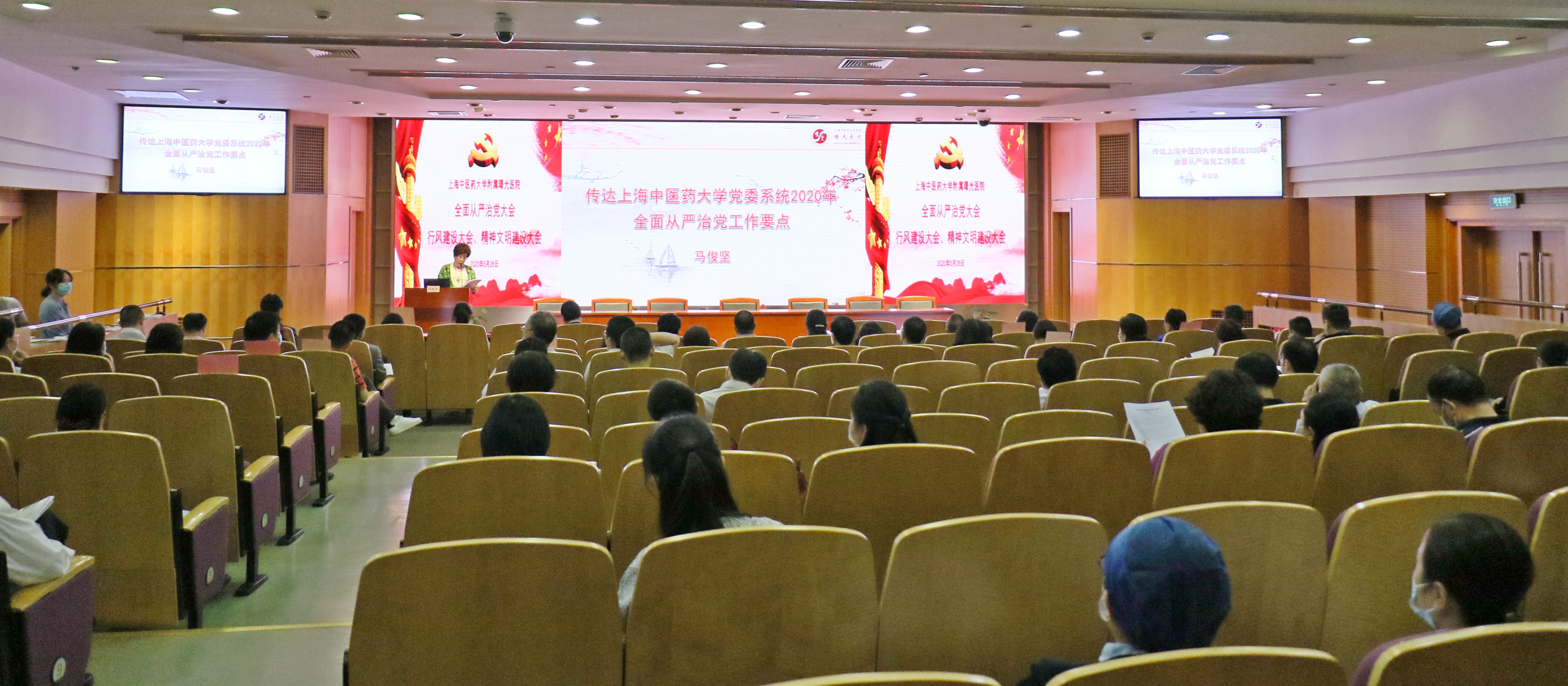 5月26日下午,天游ty8线路官网附属曙光医院在东院学术报告厅召开2020年度全面从严治党大会、行风建设大会、精神文明建设大会。医院党委书记马俊坚、院长周华等党政领导班子、党委委员、纪委委员、党支部书记、职能部门负责人、科室负责人等参加会议。大会由医院党委副书记、纪委书记姚政主持。