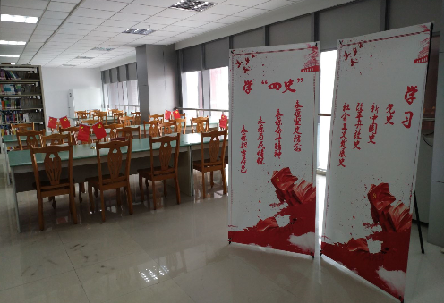 在图书馆二楼借书部设“四史”主题书架,同时设置25人左右的阅读区,并提供交流讨论区,供各基层党组织使用(预约电话:牛光辉51322614,王卓51322625)。