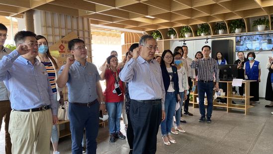 作为中国近代工业的发祥地,杨浦滨江见证了上海百年工业的发展历程。党员们以“初心的出发地”秦皇岛码头为首站,实地参观了秦皇岛码头党群服务站。秦皇岛码头原为黄浦码头,一百年前,包括周恩来、邓小平、聂荣臻在内的650余位留法勤工俭学学生从这里登船远航,踏上了寻求救国救民之路。百年后的今天,从这里再出发,缅怀革命先烈,追寻先辈的奋斗足迹,感受红色基因的历史传承。在讲解员的引领下,党员们通过沙雕版画、透明触控和语音播报,认真地观看和聆听毛泽东主席踏上追寻革命真理道路的红色故事。并在天游ty8线路检测中心登录终身教授、上海市名中医严隽陶老师的带领下,面向红色党旗,重温入党誓词,鞭策自己葆初心、善作为!