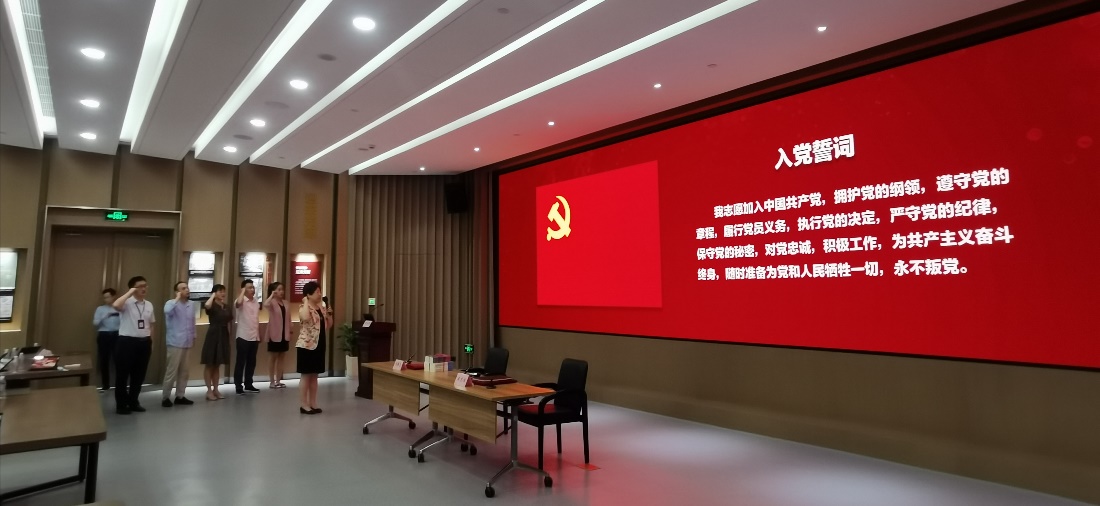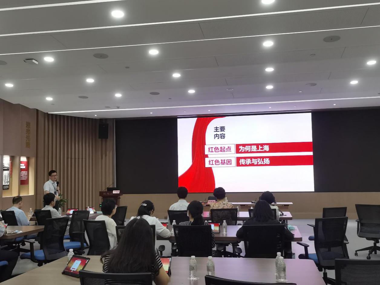 签约仪式后,党史党建教研部赵大朋上“孕育光明:中国共产党与上海”主题党课,从阶级基础、思想基础、社会基础、环境基础及国际环境等五个部分讲述了中国共产党在上海的诞生和坚守的初心故事。课后,马俊坚带领全体党员重温入党誓词,接受精神洗礼。