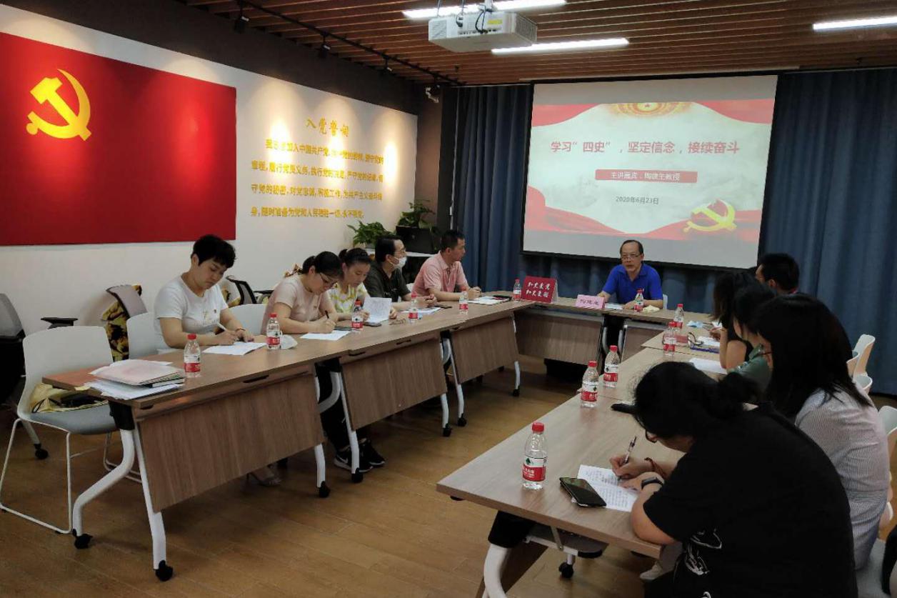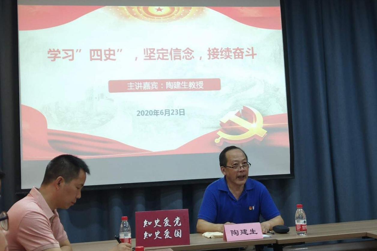 6月23日下午,校后勤党总支特邀天游ty8线路官网原中药学院院长、党总支书记陶建生教授在党建服务中心为党员开展了一堂题为《学习“四史”,坚定信念,接续奋斗》的“四史”学习教育专题党课。后勤保障党支部书记周强峰主持会议,后勤党总支25名党员参加。