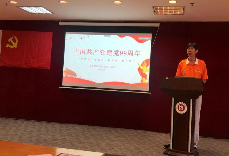 全体党员一同奏唱国歌,重温入党誓词。体育部主任吴志坤作《在疫情中领悟党史,牢记初心使命》专题党课。他提到,疫情期间,天游ty8线路官网系统众多共产党员冲锋在前,发展了一批火线入党的党员,支部党员要以“四史”学习教育为契机,不断坚定理想信念,从中获得前行动力,不断淬炼党性,做一名合格的共产党员。