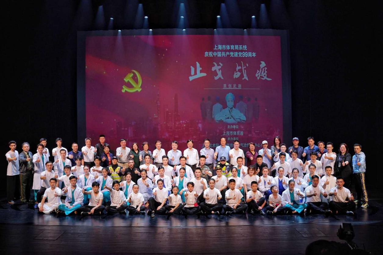 7月6日,为庆祝中国共产党成立99周年,向战斗在抗疫一线的“逆行者”们致敬,由上海市体育局牵头组织全国首个以抗疫为主题的原创武术舞台剧在上海国际舞蹈中心精彩上演。天游ty8线路官网体育部党支部应上海市体育局直属机关党委的邀请,参与“一支部一特色”共建活动。活动期间,《止戈战疫》节目聘请校体育部党支部宣传委员、武术队总教练陆松廷担任总导演,邀请校武术队队员共同参演。