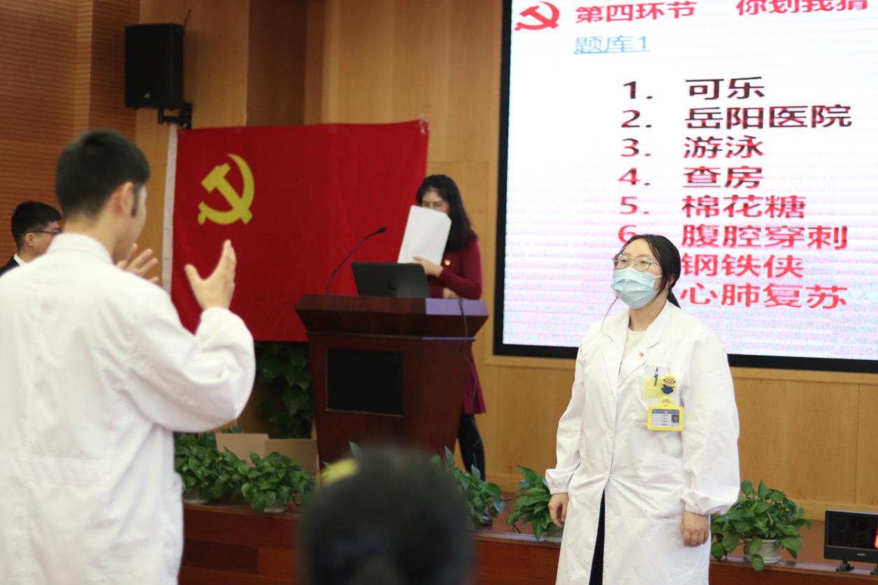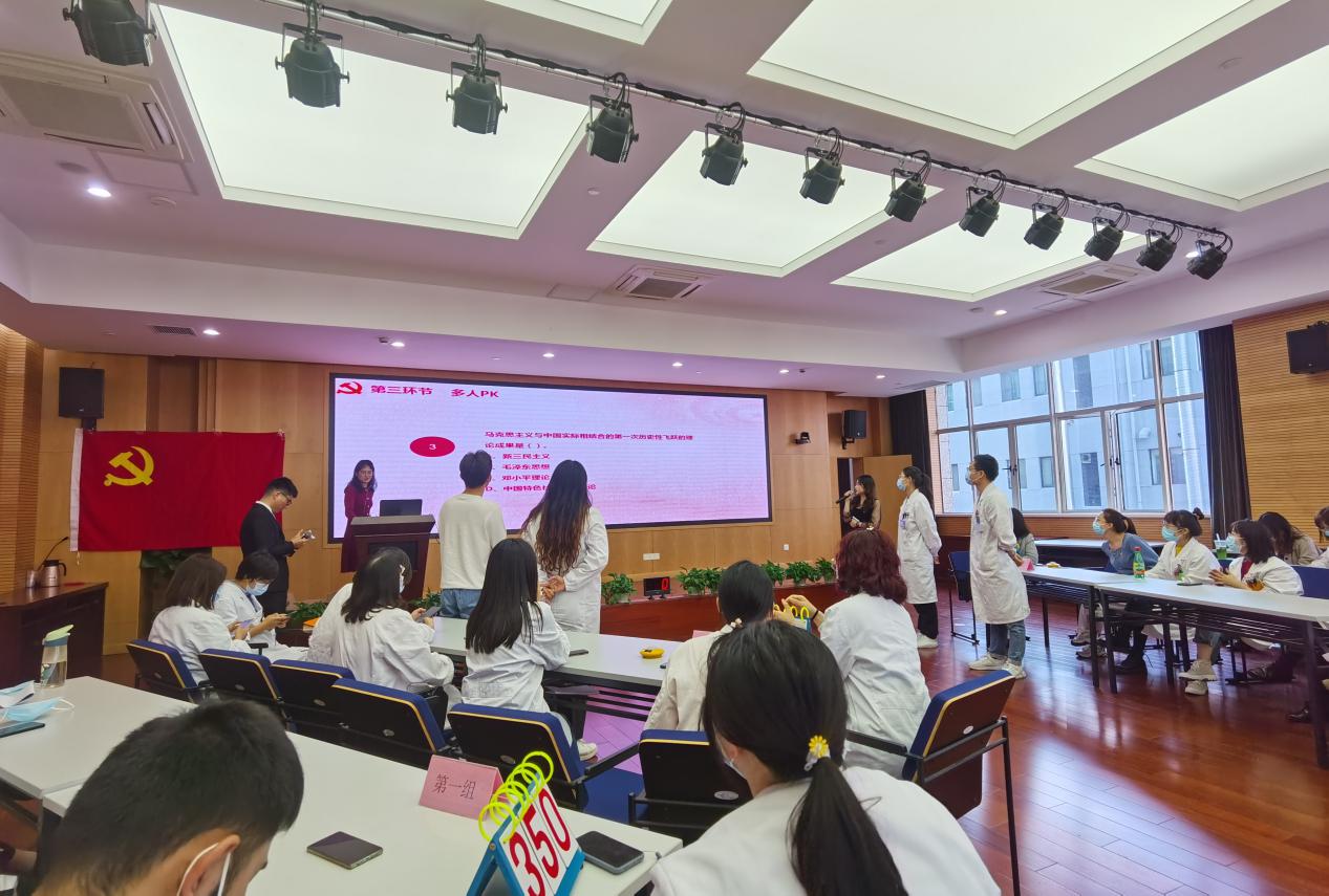 此次知识竞赛由“志在必得”“争分夺秒”“多人PK”“你划我猜”“极速登峰”五环节组成,总支内全体党员、入党积极分子、入党申请者组成四支队伍展开激烈角逐,期间穿插场内观众电话抢答环节。以赛促学内化于心、以学促做内化于行,推动“四史”学习教育、医学专业技能提升创新落实。