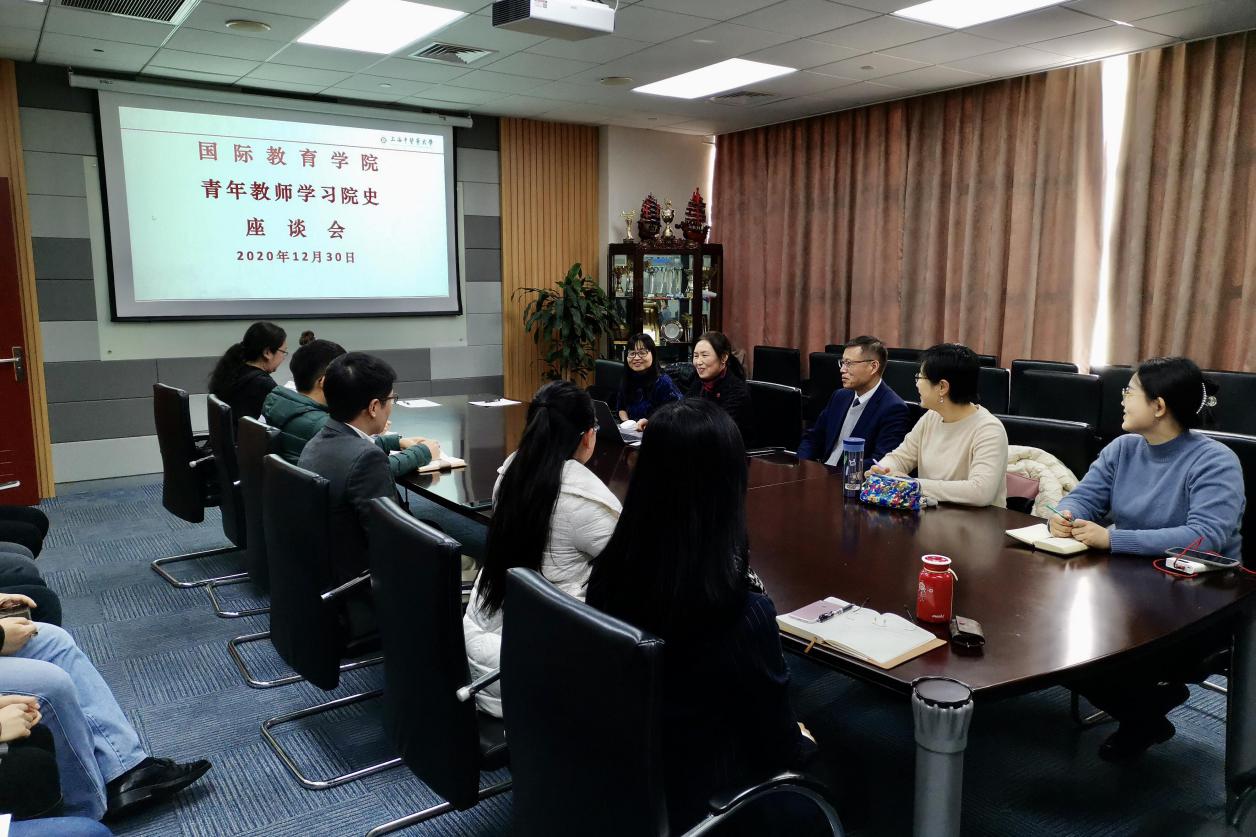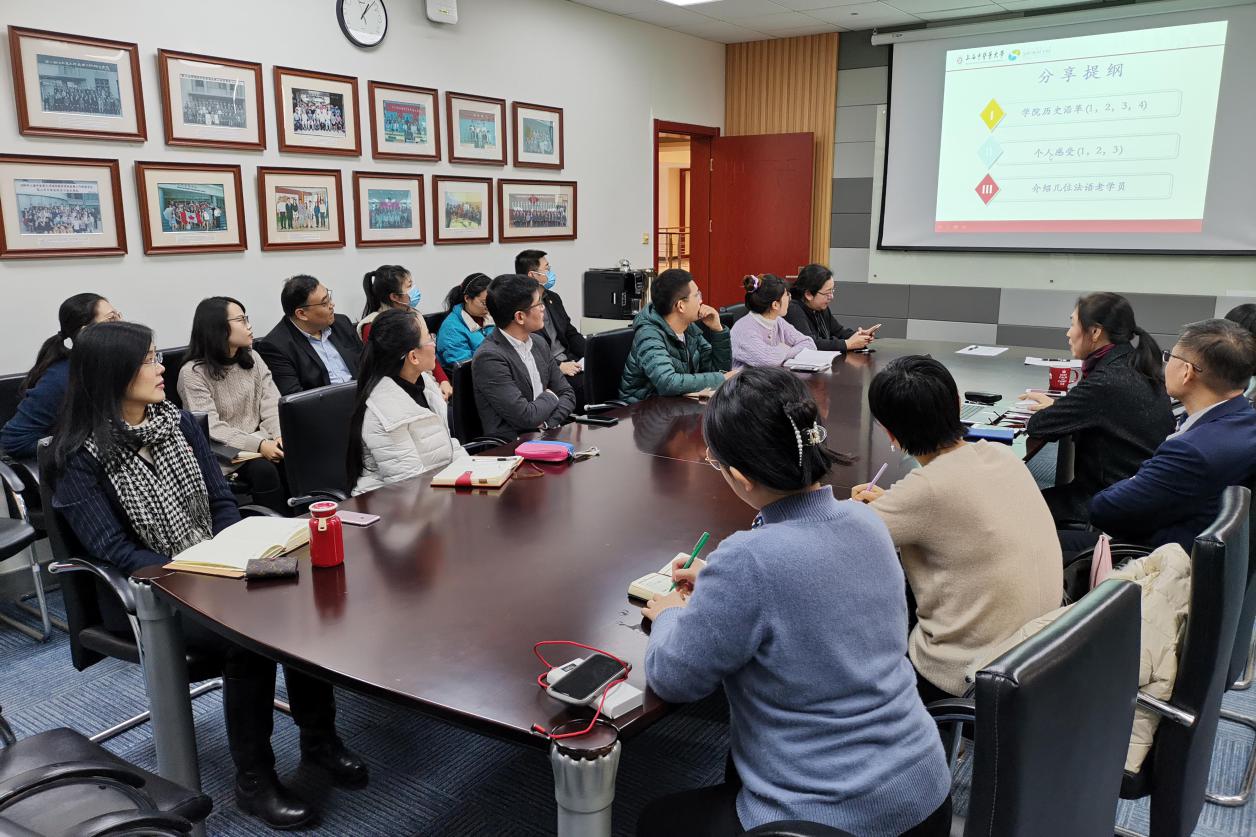 为深入推进“四史”学习教育,帮助青年教师了解天游ty8线路官网来华留学教育历史和国际教育学院发展史,12月30日下午,国际教育学院召开院史学习座谈会。法语区域主任张伟、日语区域主任鉏桂祥同20余名青年教职工代表交流分享了天游ty8线路官网来华留学教育工作的发展概况和老一辈国际教育开拓者不懈追求的历程。天游ty8线路官网国际教育学院院长林勋、副院长韩丑萍参加座谈会。会议由国际交流与教育党总支书记成琳主持。