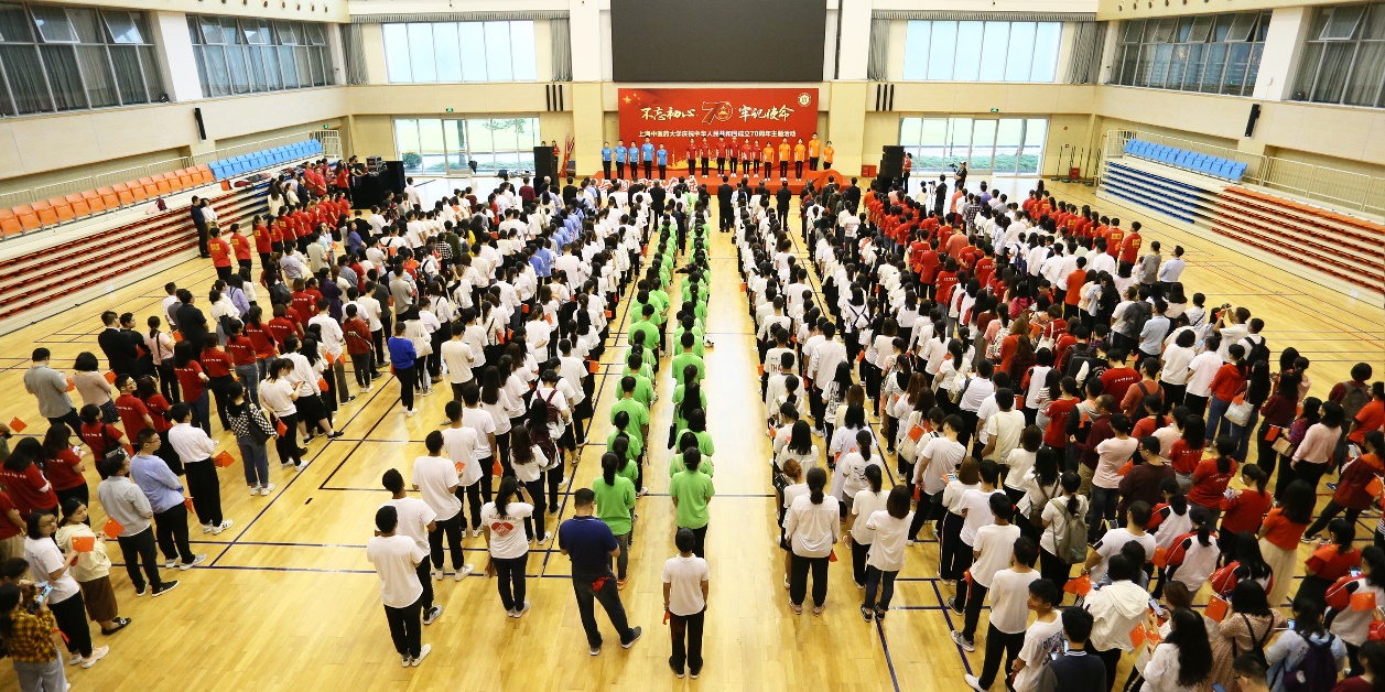 16位 “星火红色基因”大学生讲解员们发表激昂热情的爱国演说。分别从初心、担当、使命三个角度诠释了自己对红色精神的理解,他们曾在中共一大会址、四大会址、龙华烈士纪念馆等红色教育实践基地担任多年义务讲解员,通过传递红色基因,展现青年担当,深入推进学生党员“不忘初心、牢记使命”主题教育。随后,在场师生齐唱《歌唱祖国》,用歌声抒发对伟大祖国的深深至爱和生日告白。