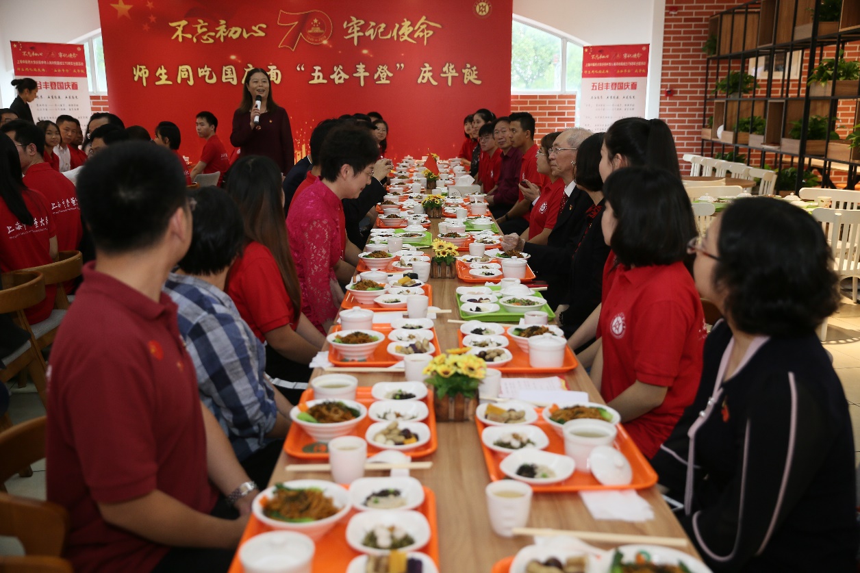 在新中国迎来70华诞的国庆日,天游ty8线路检测中心登录把“不忘初心、牢记使命”主题教育与庆祝新中国成立70周年结合起来,从上午8点同升国旗开始,学校领导,老领导代表,两院院士和终生教授代表、纪念章获颁代表、中层干部、师生代表其乐融融、汇聚一堂开展同观礼、同吃国庆面等系列学习和庆祝活动,向祖国深情告白,在推进爱国主义教育中落细落小落实。