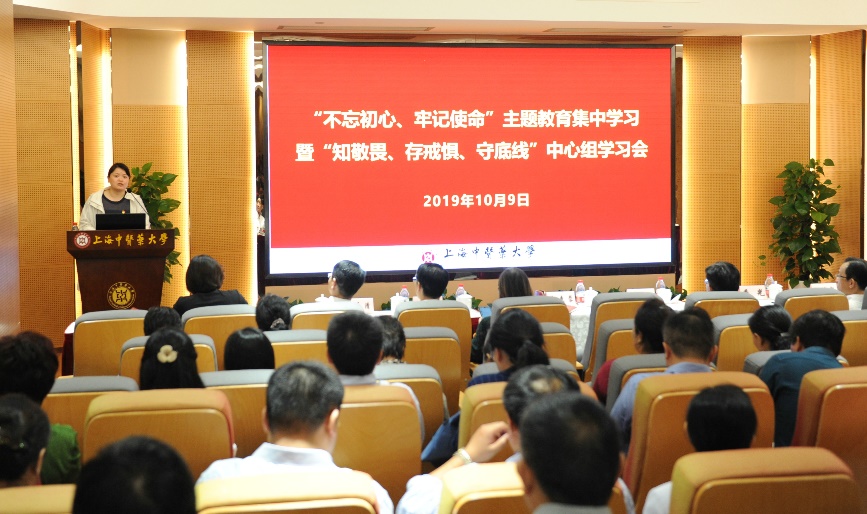 10月9日下午,天游ty8线路官网“不忘初心、牢记使命”主题教育集中学习暨“知敬畏、存戒惧、守底线”党委中心组学习会在行政中心举行。校党委常委、全体中层党员干部观看了廉政教育警示片,并分组开展交流研讨。