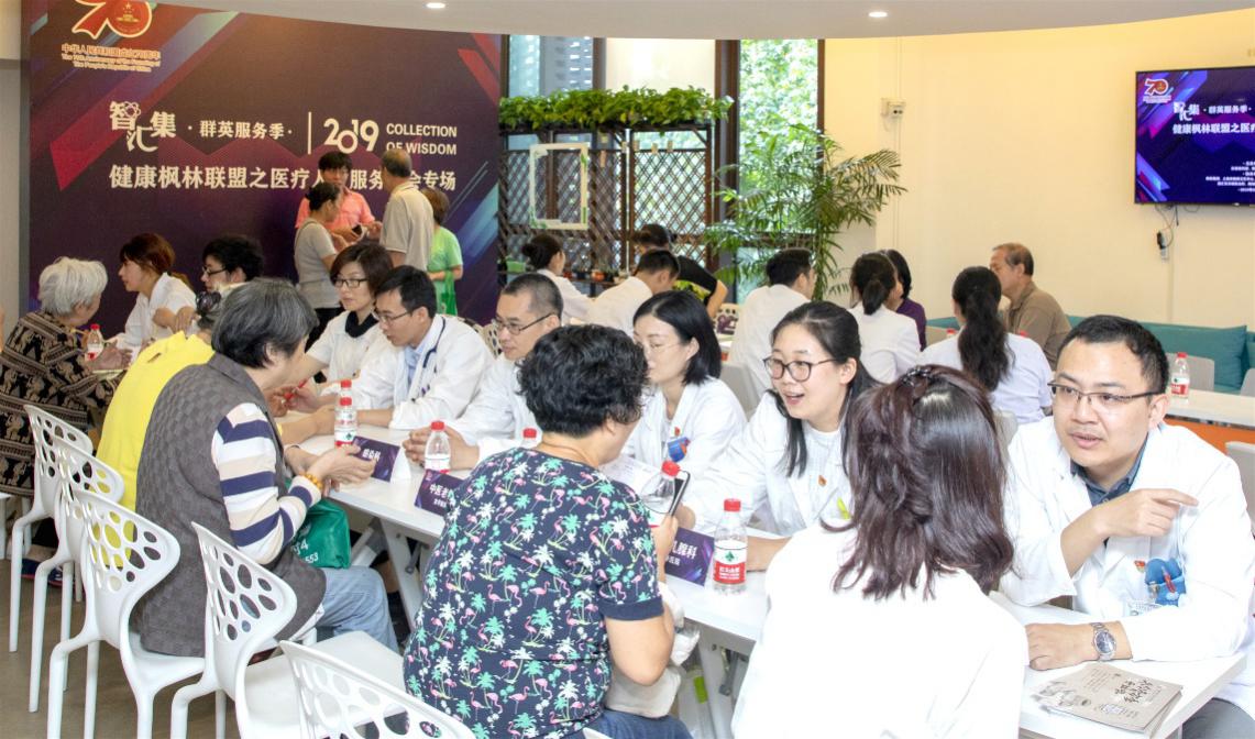 本次活动在枫林街道邻里汇南二楼举行,党员志愿者分别来自医院老年科、心病科、感染科、骨伤科等科室,为现场群众进行健康咨询和中医治未病健康宣教。针对久坐办公室的企业白领,现场还特意教授中医养生操,呼吁大家关注健康,保证足够的运动量。本次活动吸引众多居民参与,现场气氛热烈。