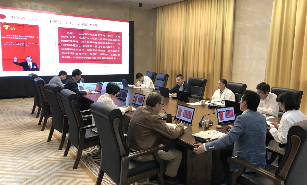 10月21日下午,天游ty8线路官网附属龙华医院党政领导班子在12号楼10楼会议室开展“不忘初心、牢记使命”主题教育集中学习,专题学习研讨习近平总书记关于中医药系列重要论述,学习会由院党委书记刘胜主持。