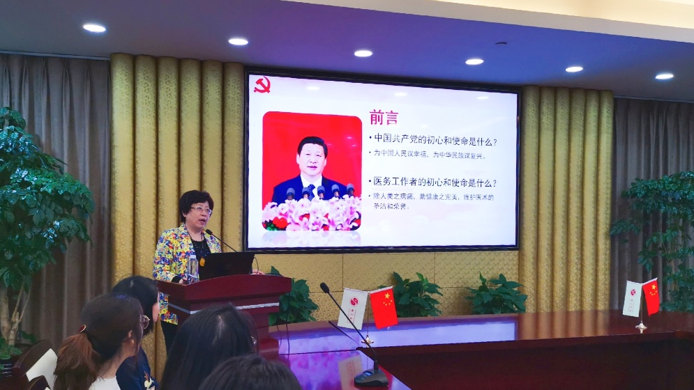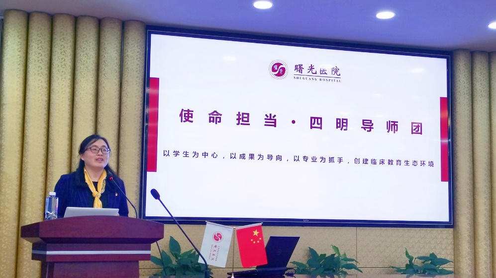 副院长仇菲根据“不忘初心、牢记使命”主题教育开展的调研内容,深入剖析学情、课程设计、教师发展等问题,为新生带来“以学生为中心,以成果为导向,以专业为抓手,创建临床教育生态环境”为工作主旨的“四明导师团”介绍,让新生感受到导师团所承载着全员、全过程、全方位育人的初心和使命,努力践行全心全意为学生服务的理想和担当。