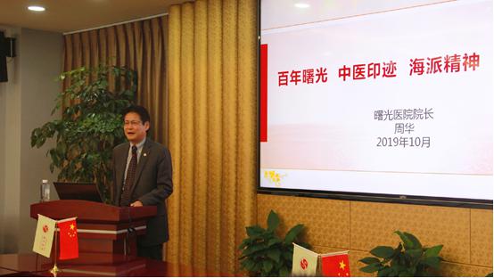 院长周华为新生带来《百年曙光 中医印迹 海派精神 薪火相传》——曙光医院院情院史介绍。他以幽默生动的讲述向新生介绍了曙光医院的悠久历史、学科建设、人才梯队、医教研实力、国际交流等情况,让新生由衷地感受到身为曙光一员的自豪感和责任感。“曙光作为百年老院,它曾是中医发展的出发点,是许多海派名医的摇篮,现在,它也将成为在座各位新生的出发点和摇篮!”