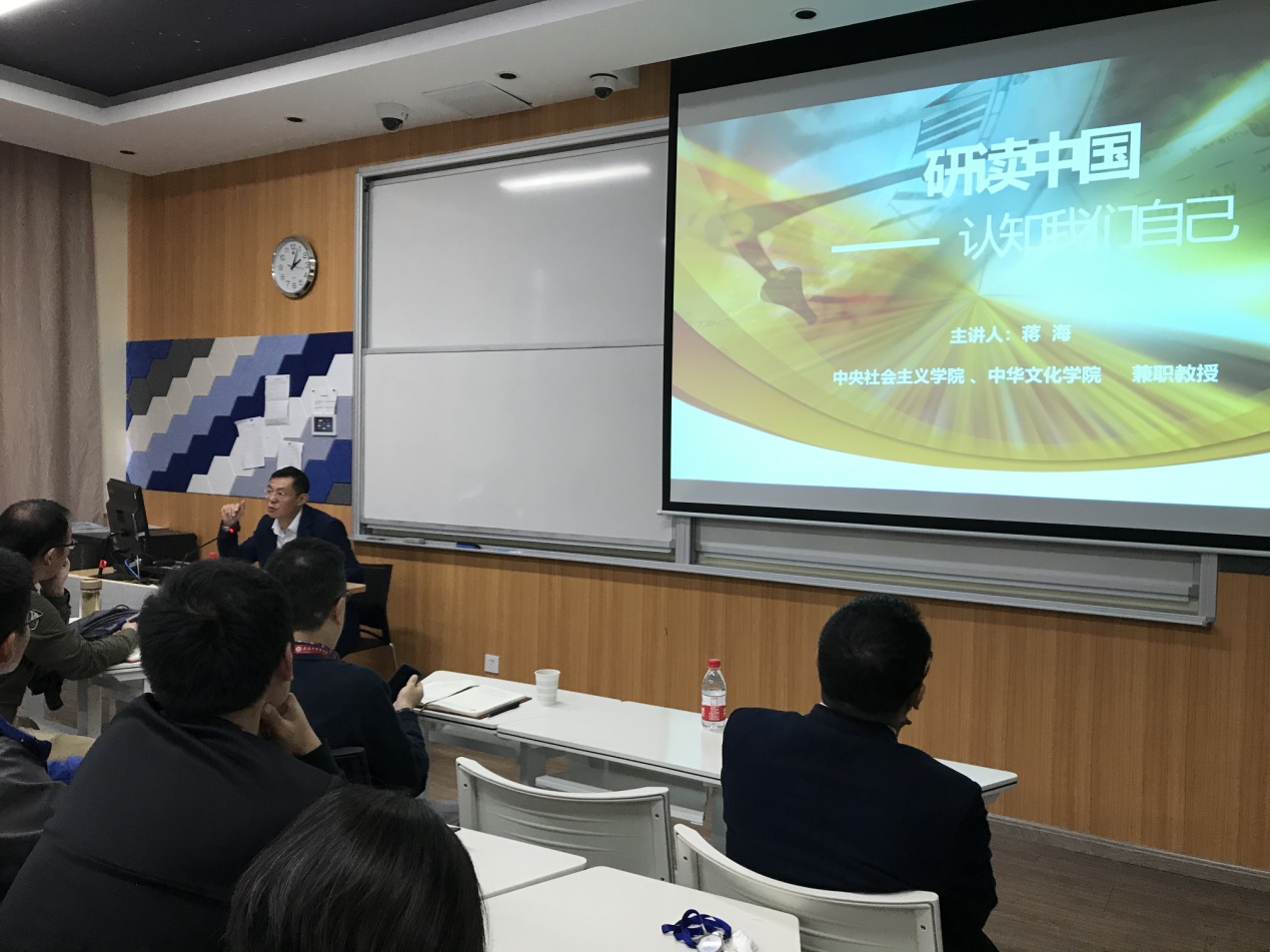 11月6日下午,由学校党委统战部主办、农工党上中医委员会承办的“统战杏语”专题讲座在7202教室举行。会议邀请中央社会主义学院、中华文化学院兼职教授蒋海作“研读中国——认知我们自己”专题讲座。学校民主党派负责人、党外中青年骨干、科技人文研究院教师及青年教师班主任等80余名师生聆听。农工党上中医委员会主委姚捷主持。