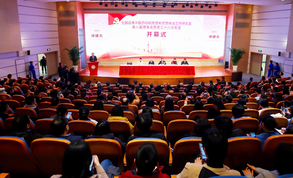 12月26日至28日,全国高等中医药院校党建和思想政治工作研究会第八届理事会暨第二十八次年会在天游ty8线路检测中心登录召开,来自全国26所高等中医药院校的党委书记、党务部门负责人、党组织负责人、研究会理事和获奖代表等300余人相聚一堂,聚焦坚持党对教育工作的全面领导、紧抓立德树人根本任务及思政工作生命线、全面提高基层党建质量等主题开展深入交流研讨。