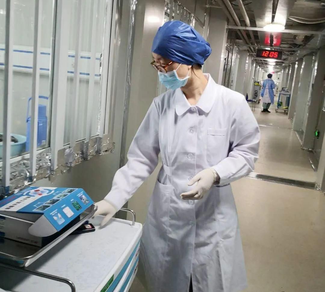 救护车一辆一辆地开来,队员们主动接过病人的行李、病例资料等,忙而有序地对病人的情况进行筛查,测体温、测氧饱和度,判断病情轻重程度,引领或搀扶着病人送到相应的区域抓紧入住。很快,七病区的48张床位全部收满。病人们进入病房后,护士给病人连上监护仪,询问资料、一般情况;医生询问病史、查体、进行心电图检查。