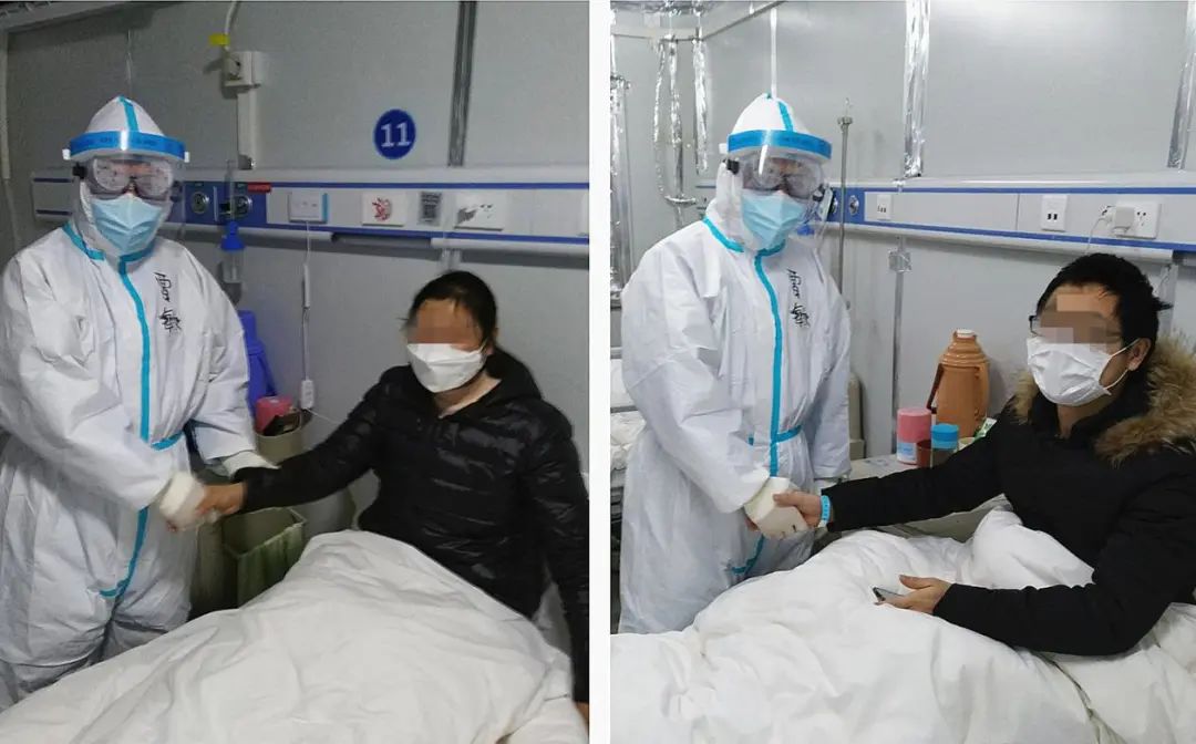 附属市中医医院血液科医生邓剑青每日进舱查房时,总能遇到各种令人动容的场景。感染三科五病区里收治的,也是目前在雷神山医院中最年长的92岁患者,不能自理的他常常想家,常常哭得像个孩子一样伤心。市中医医院ICU护士朱颖也提起了这位爷爷,“进病房时,他一直抓着我们的手说:‘打电话给我儿子,我要和他说话,我想他了。’我们就像哄小孩子一样安慰他,关心他,尽量让他感到温暖。”还有一位阿姨在知道医护人员们来自上海时,流着眼泪不断感激地说队员们是救命恩人。“这两天,武汉的气温回升了,春天离我们越来越近”,邓剑青期盼着,“愿春光灿烂,枝头春满,山河无恙,人间皆安。”