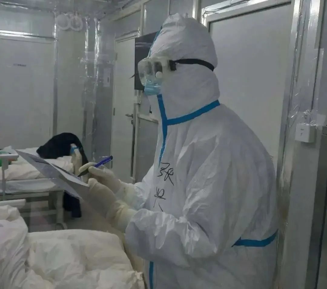 在雷神山医院感染三科第七病区,附属曙光医院呼吸科副主任医师宋秀明和急诊科副主任医师尹成伟在接诊首日率先进入隔离病房收治患者。由于第一批病人数量较多,原计划在清洁区医生办公室工作的呼吸科医生张兴进入隔离病房支援。查房、问诊,他们在病房里询问患者的病情,查看患者的影像和病历资料,勇敢战“疫”。