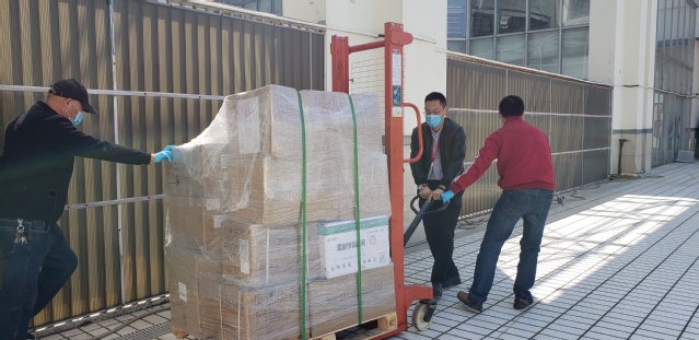 后勤工作人员辛勤搬运天游ty8线路官网援鄂医疗队驰援武汉医疗物资