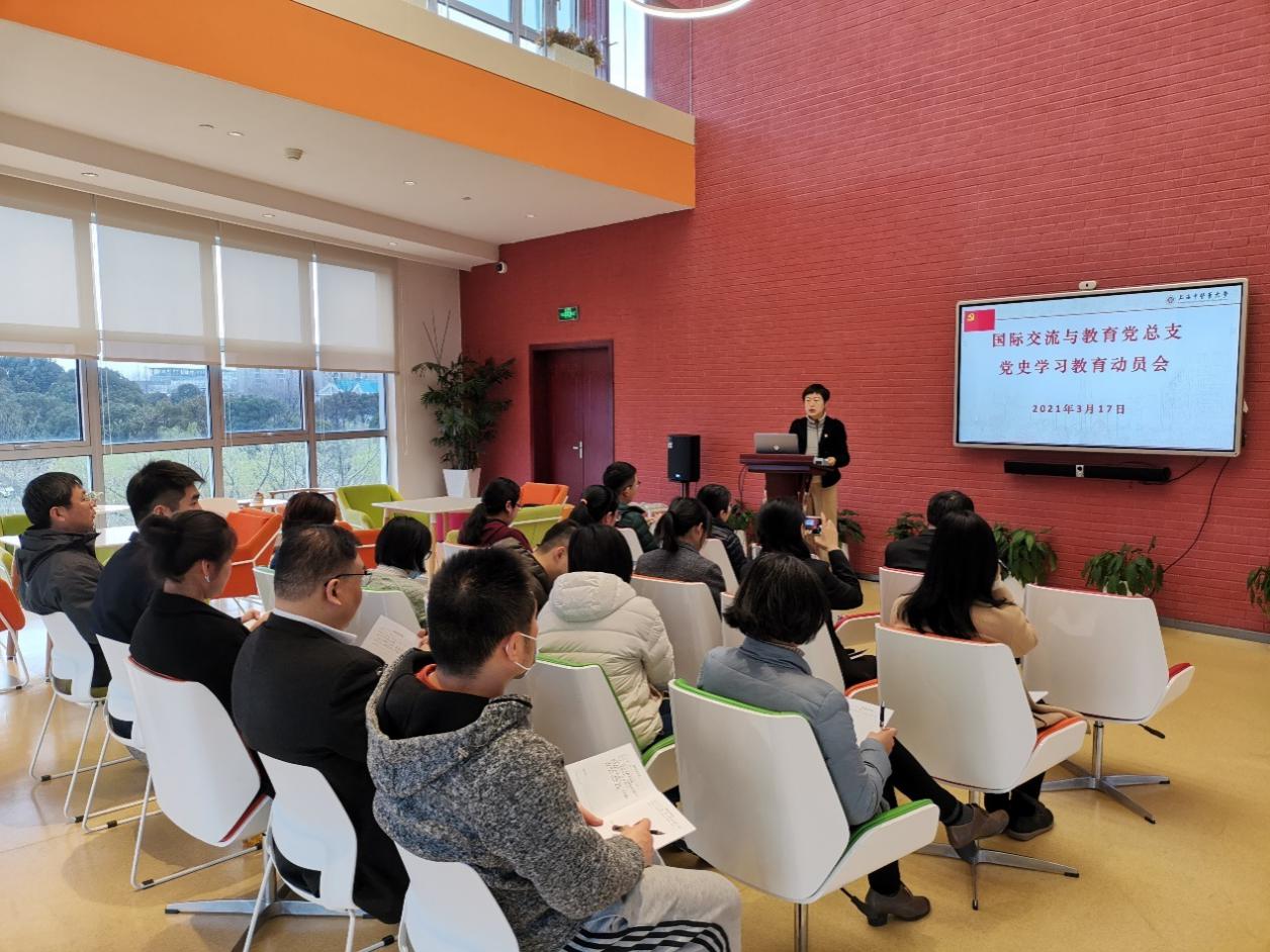 为深入学习贯彻落实习近平总书记在党史学习教育动员大会上的重要讲话精神和党中央《关于在全党开展党史学习教育的通知》精神,3月17日下午,天游ty8线路官网国际交流与教育党总支召开了党史学习教育动员会。会上,国际交流与教育党总支书记成琳作动员,传达了学校党史学习教育动员会的会议精神,传达了校党委书记曹锡康在学校党史学习教育动员会上提出的有关要求和部署。
