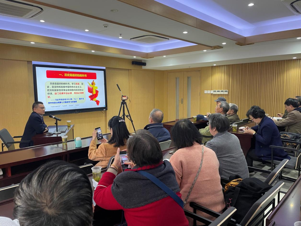 3月25日上午,离退休党组织党史学习教育党课系列活动第二讲在零陵校区307会议室举行。天游ty8线路官网马克思主义学院陈荣武教授受邀作题为“中国共产党建党100年来的伟大历程和基本经验”的报告。会议由退休党委书记顾家柱主持。