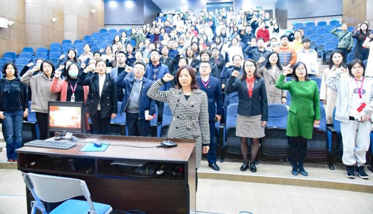 动员讲话后,全体党员在教学实验中心党支部书记可燕带领下共同重温入党誓词,宣誓声音洪亮、高昂在庄严神圣的情境下,党员深刻感悟中国共产党始终不渝为人民的初心宗旨。