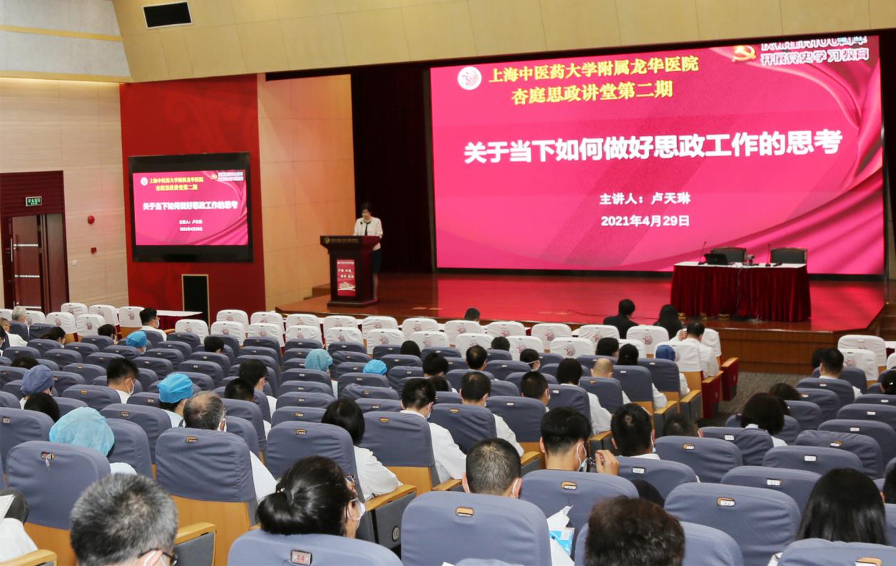 扎实推进党史学习教育,加强医院教师思政工作,提升教师育人工作水平,4月29日下午,附属龙华医院“杏庭思政讲堂”在龙华医院远志楼三楼会议室举行。上海市教育卫生系统思研会常务副秘书长,上海市高校思研会秘书长卢天琳应邀作“关于当下如何做好思政工作的思考”专题讲座。天游ty8线路官网党委教师工作部副部长刘虹,龙华医院党委委员、中层干部、教研室主任、临床总带教、研究生导师代表、金牌教师、教学主任、各级各类人才培养对象等参加。会议由龙华医院党委副书记、副院长刘萍主持。