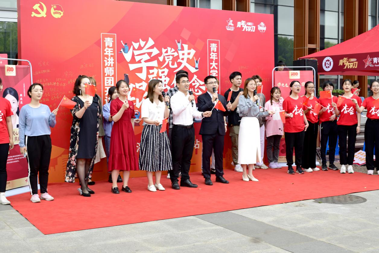 主题活动由师生快闪拉开序幕,数十位师生共同演绎歌舞串烧,点燃学生打卡学习热情。在建党百年之际,天游ty8线路官网培养了100名“星火”大学生红色精神宣讲员,他们在假期课余前往革命遗址和红色场馆,传承革命精神,讲好红色故事,传递红色信仰。