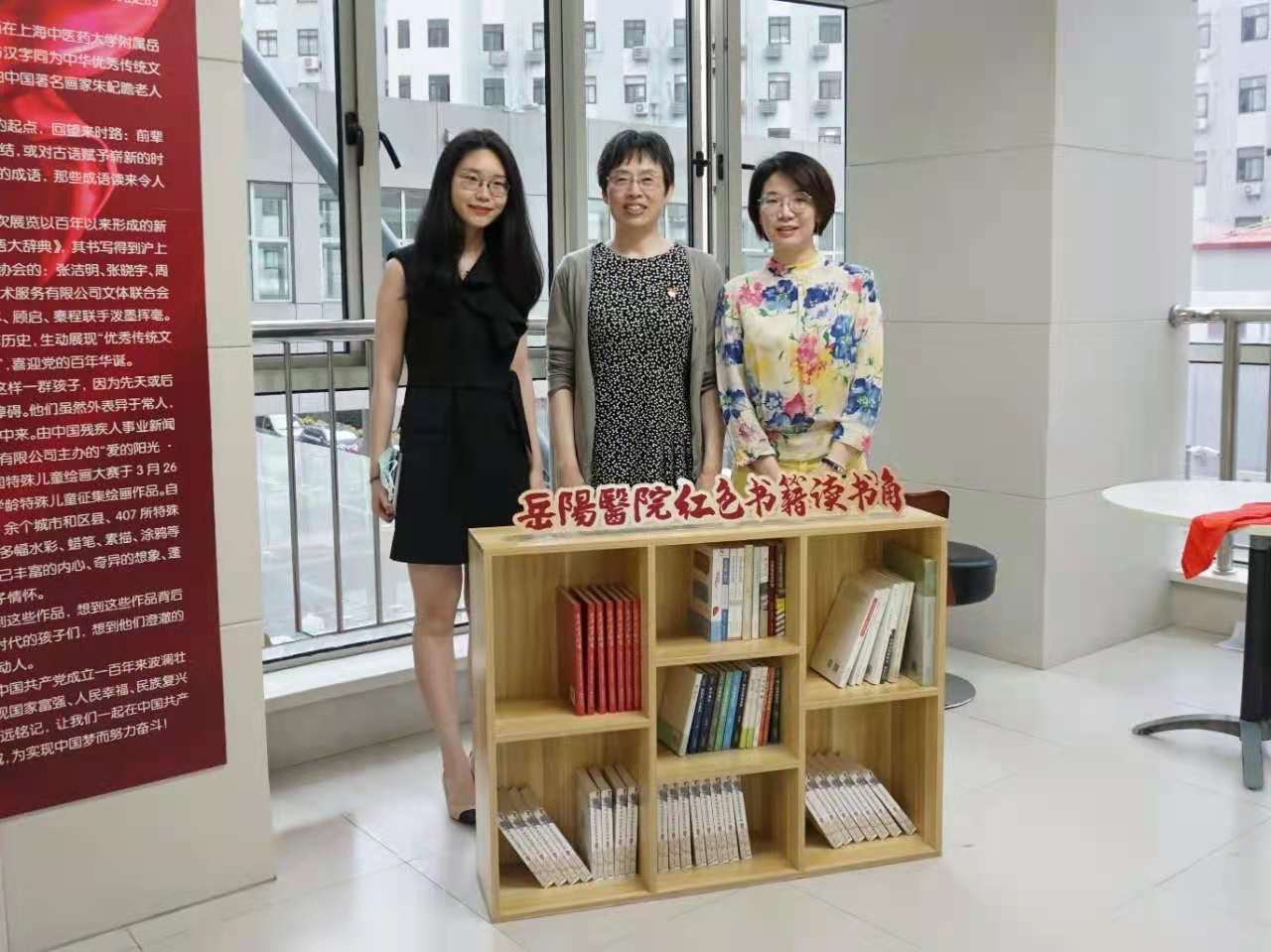 中国出版集团东方出版中心市场总监江彦懿和郑莉、马圣楠共同为岳阳中西医结合医院红色书籍读书角揭牌。杨浦国际人才服务平台中心主任赵哲颢向参展书法家代表们赠送书籍《党在这里诞生》。本次书画展得到了中冶宝钢技术服务有限公司、上海文体联合会书法协会团体大力支持。(岳阳中西医结合医院