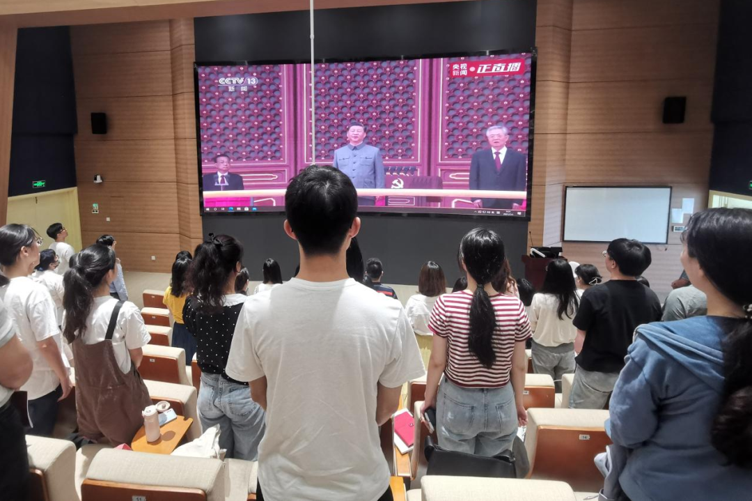 学校同时组织校院两级团委书记、学生骨干、基层团组织学生代表等于教学楼6304教室集中观看。