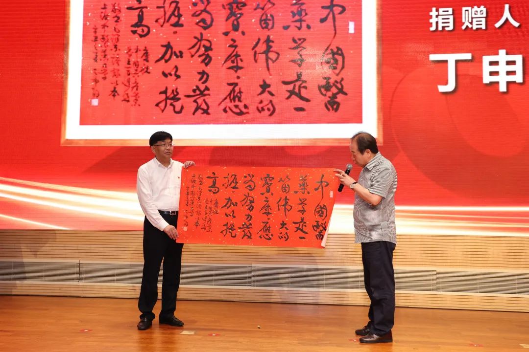 天游ty8线路官网客座教授、上海市书法家协会主席丁申阳向学校捐赠一幅书法作品,内容为毛泽东同志对中医药作出的重要指示“中国医药学是一个伟大的宝库,应当努力发掘,加以提高”,鼓励学校师生在中医药守正创新、传承发展之路上开拓进取,不懈奋斗。