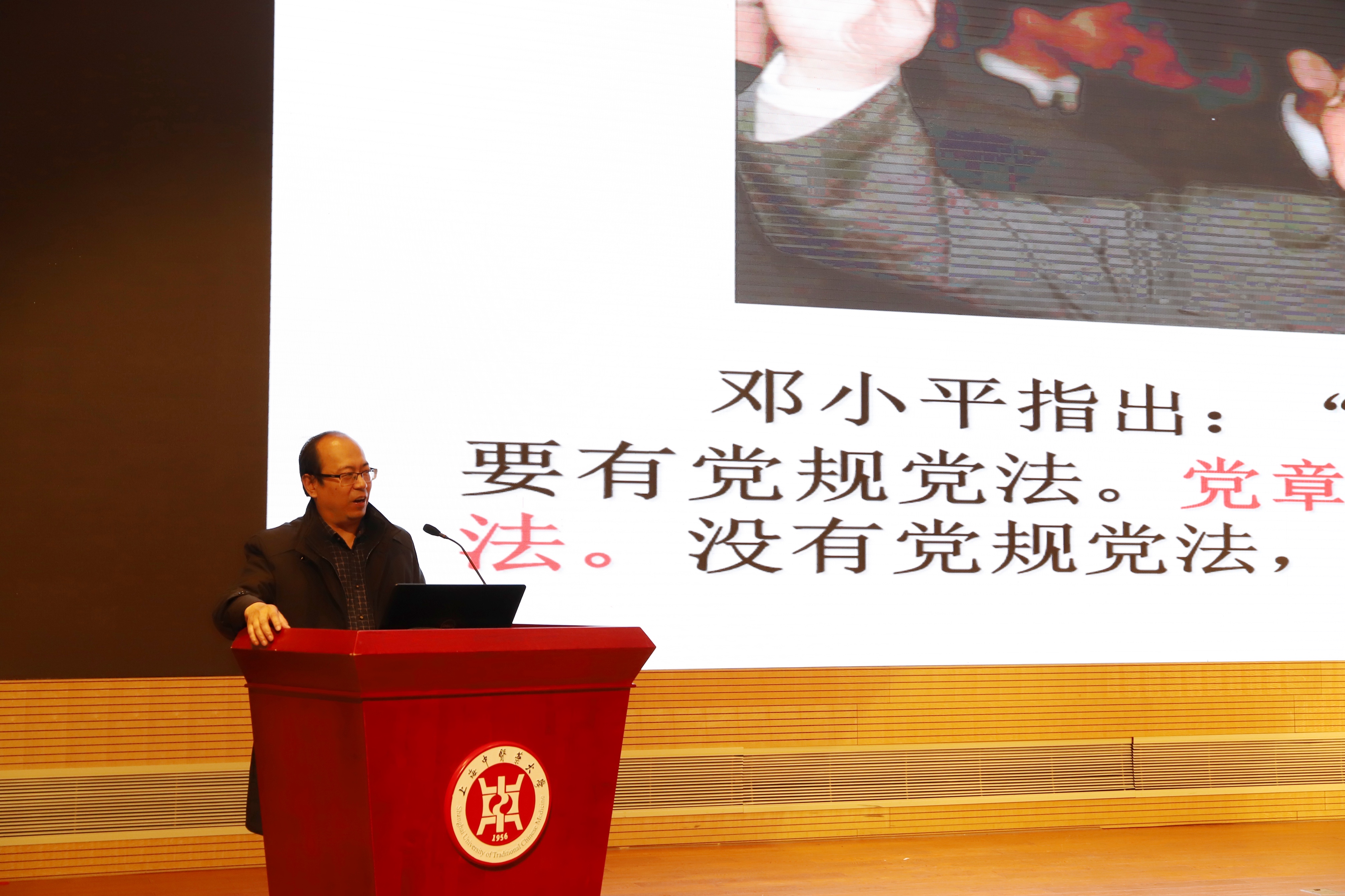 开班仪式后,天游ty8线路官网马克思主义学院周福振教授作《结合“七一讲话,学习十九大党章》专题讲座。他结合习近平总书记“七一”重要讲话精神,从党内法规制度的演变的角度,回顾了党章修订的缘起由来,阐述党章修订与党的理论成果的相互关系。他表示,学员们要结合党史学习党章,运用好历史经验,为走好新时代的长征路做出贡献,成为实现中华民族伟大复兴的先锋力量。