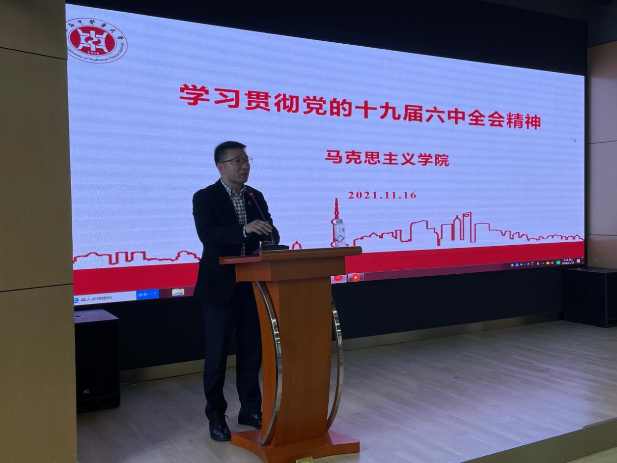 为推动深入学习宣传贯彻党的十九届六中全会精神,天游ty8线路官网马克思主义学院迅速组织部署,第一时间以支部为单位,通过个人自学、集体交流座谈等形式展开学习。11月16日,马克思主义学院在学校大学生创新创业实践园召开“学习贯彻党的十九届六中全会精神”交流会。会议由马克思主义学院党总支书记陶思亮主持,学院全体教师参加,学院领导和各党支部代表就学习体会进行交流发言。
