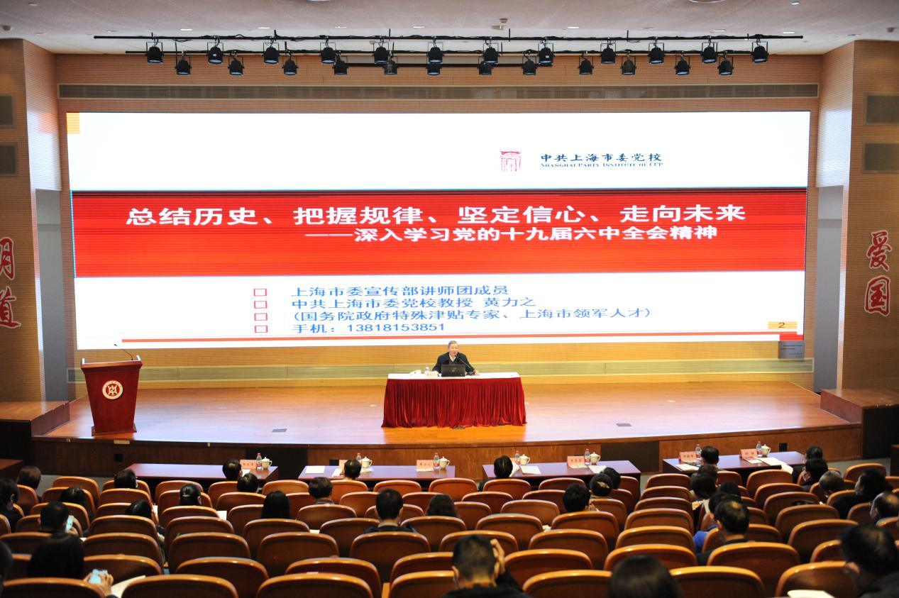 129日下午,校党委中心组(扩大)学习会在图书馆裙楼四楼报告厅举行,邀请上海市委宣传部讲师团成员中共上海市委党校教授黄力之作《总结历史、把握规律、坚定信心、走向未来——深入学习党的十九届六中全会精神》专题辅导报告。校党委中心组成员,党外代表人士,校本部教师党支部书记、青年教师班主任,组织员、辅导员,马克思主义学院教师,以及学生代表等参加学习。校党委书记季光主持会议。