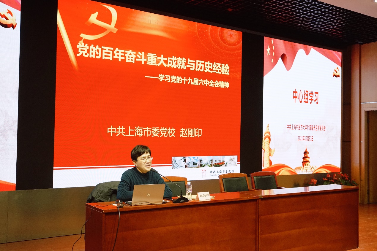 近日,天游ty8线路官网附属曙光医院党委中心组(扩大)学习会在东院二楼学术报告厅举行。上海市委党校赵刚印教授作《党的百年奋斗重大成就与历史经验——学习党的十九届六中全会精神》专题报告。医院党政领导班子、党委委员、纪委委员、党支部书记及各临床、职能部门负责人、各教研室主任、护士长等参加学习会。会议由医院党委副书记郝微微主持。